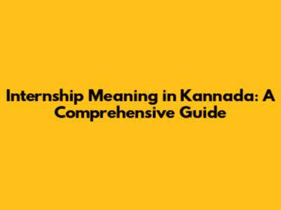 Internship Meaning In Kannada: A Comprehensive Guide