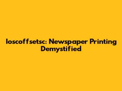Ioscoffsetsc: Newspaper Printing Demystified