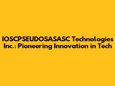 IOSCPSEUDOSASASC Technologies Inc.: Innovations And Future
