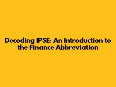 IPSE: Decoding The Finance Abbreviation