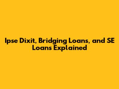 Ipse Dixit, Bridging Loans, And SE Loans Explained