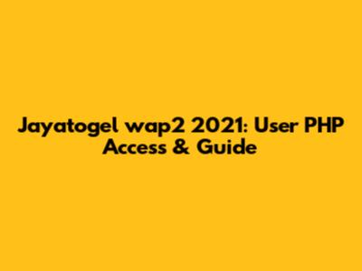 Jayatogel Wap2 2021: User PHP Access & Guide