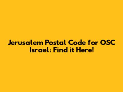 Jerusalem Postal Code For OSC Israel: Find It Here!