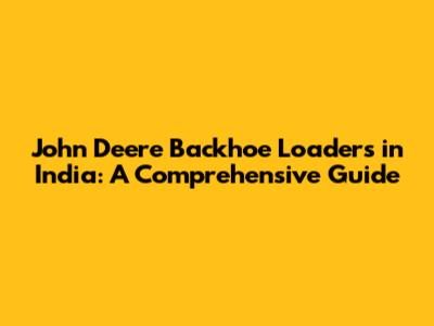 John Deere Backhoe Loaders In India: A Comprehensive Guide