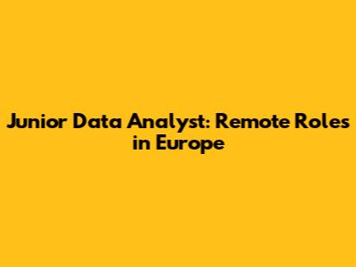 Junior Data Analyst: Remote Roles In Europe