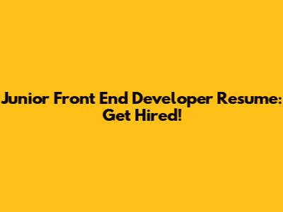Junior Front End Developer Resume: Get Hired!