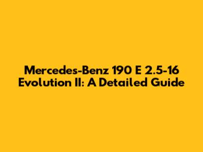 Hey guys! Ever heard of the Mercedes-Benz 190 E 2.5-16 Evolution II? If you're a car enthusiast, especially one with a soft spot for classic performance, then this car should be on your radar. This guide dives deep into what makes the Mercedes-Benz 190 E 2.5-16 Evolution II so special. We're talking about a car that not only turned heads back in the day but continues to be a highly sought-after collector's item. From its origins in the world of DTM racing to its refined engineering and iconic design, we'll cover it all. So, buckle up, and let's take a thrilling ride into the world of this legendary vehicle!