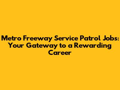 Hey there, future freeway heroes! Ever thought about a job where you're always on the move, helping people in need, and getting paid to do it? Well, buckle up, because we're diving headfirst into Metro Freeway Service Patrol (FSP) jobs. These gigs are more than just a paycheck; they're a chance to be a real-life superhero, keeping our freeways safe and sound. We will discuss everything from what the job entails, the skills needed, and how to snag one of these awesome positions. Let's roll!