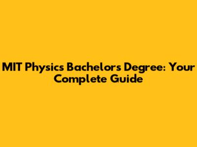 MIT Physics Bachelor's Degree: Your Complete Guide
