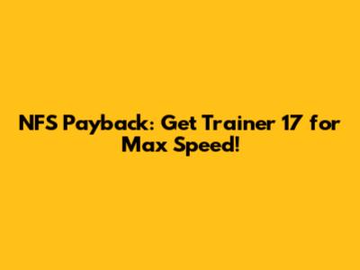 NFS Payback: Get Trainer 17 For Max Speed!