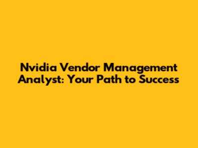 Nvidia Vendor Management Analyst: Your Path To Success
