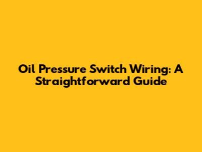 Oil Pressure Switch Wiring: Simple Guide