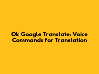 Ok Google Translate: Voice Commands For Translation