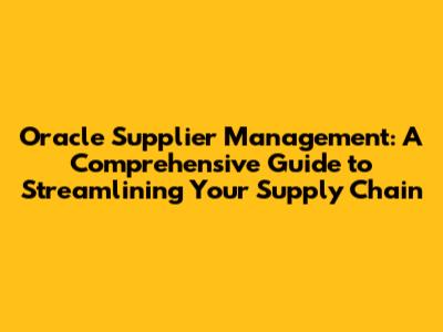 Oracle Supplier Management: A Complete Guide