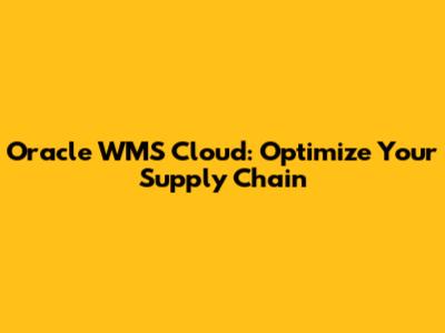 Oracle WMS Cloud: Optimize Your Supply Chain