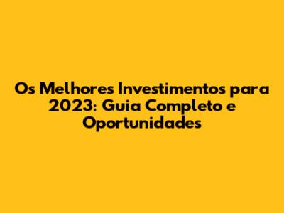 Os Melhores Investimentos Para 2023: Guia Completo E Oportunidades