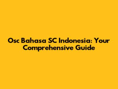 Osc Bahasa SC Indonesia: Everything You Need To Know