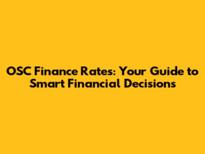 OSC Finance Rates: Your Guide To Smart Financial Decisions