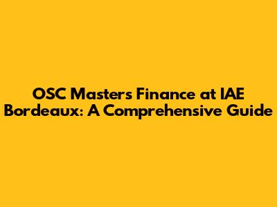OSC Masters Finance At IAE Bordeaux: A Comprehensive Guide