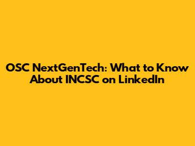 OSC NextGenTech: What To Know About INCSC On LinkedIn