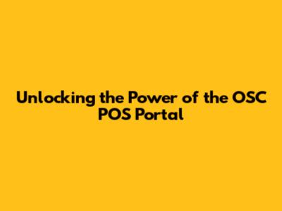 Unlocking the Power of the OSC POS Portal