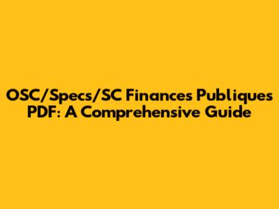 OSC/Specs/SC Finances Publiques PDF: A Comprehensive Guide