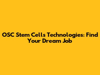 OSC Stem Cells Technologies: Find Your Dream Job