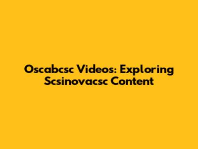 Oscabcsc Videos: Exploring Scsinovacsc Content