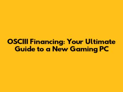 OSCIII Financing: Your Ultimate Guide To A New Gaming PC
