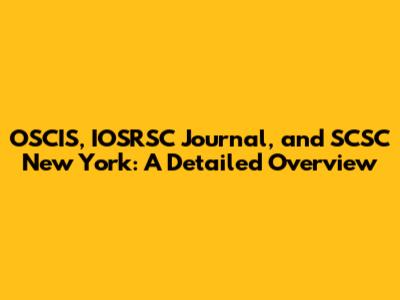 OSCIS, IOSRSC Journal, And SCSC New York: A Detailed Overview