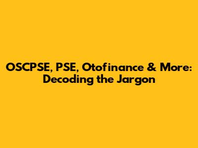 OSCPSE, PSE, Otofinance & More: Decoding The Jargon