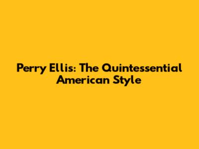 Perry Ellis: The Quintessential American Style