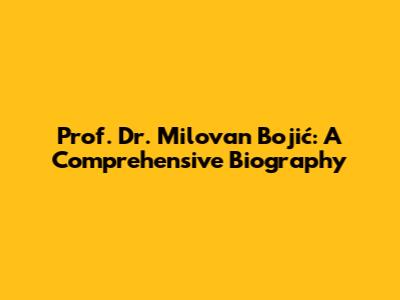 Prof. Dr. Milovan Bojić: A Comprehensive Biography