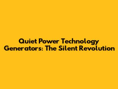 Quiet Power Generators: The Silent Revolution