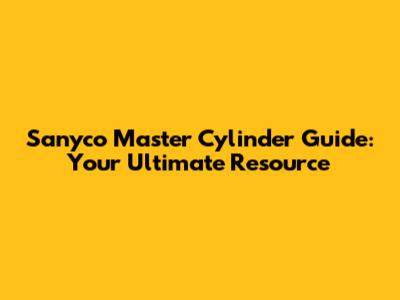 Sanyco Master Cylinder Guide: Everything You Need