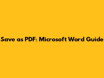 Save As PDF: Microsoft Word Guide