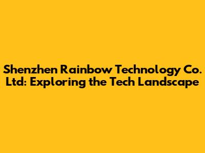Unveiling Shenzhen Rainbow Technology Co. Ltd: What They Do