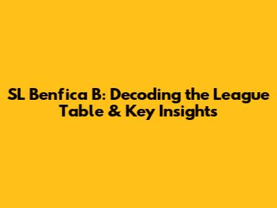 Hey guys! Ever wondered about the SL Benfica B team and how they're doing in their league? Well, you're in the right place! We're diving deep into the SL Benfica B league table, giving you the lowdown on their performance, key stats, and what it all means. This isn't just about looking at numbers; it's about understanding the journey, the wins, the losses, and the overall picture of a team striving for success. Let's get started, shall we? This guide is designed to be your go-to resource, whether you're a die-hard fan, a casual observer, or just someone curious about the beautiful game. We'll break down the table, explain the stats, and offer insights that will make you sound like a pro in no time.