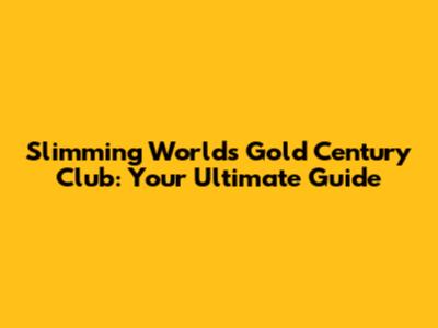 Slimming World's Gold Century Club: Your Ultimate Guide