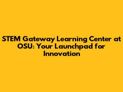 STEM Gateway Learning Center: OSU's Hub For Innovation