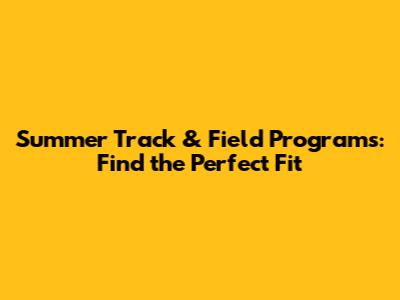 Summer Track & Field Programs: Find The Perfect Fit
