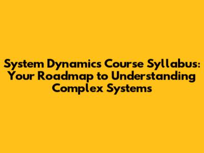 System Dynamics Course Syllabus: A Comprehensive Guide