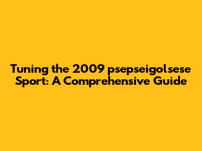 Tuning The 2009 Psepseigolsese Sport: A Comprehensive Guide