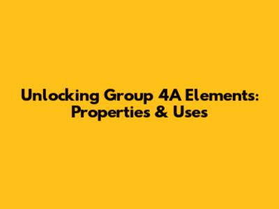 Unlocking Group 4A Elements: Properties & Uses