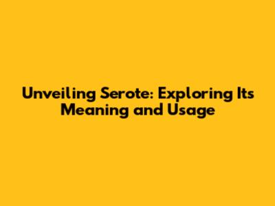 Unveiling 'Serote': Exploring Its Meaning And Usage