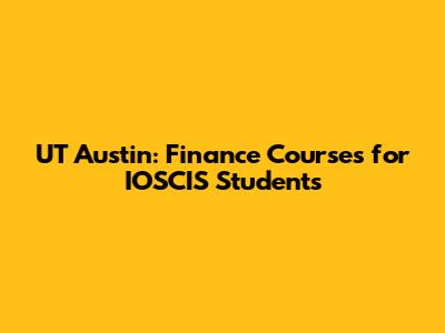 UT Austin: Finance Courses For IOSCIS Students