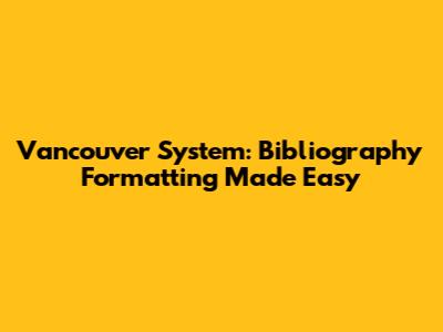 Vancouver System: Bibliography Formatting Made Easy
