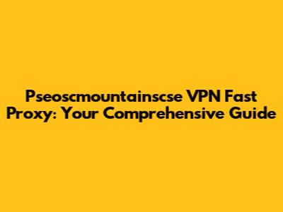 VPN Fast Proxy: Pseoscmountainscse Guide