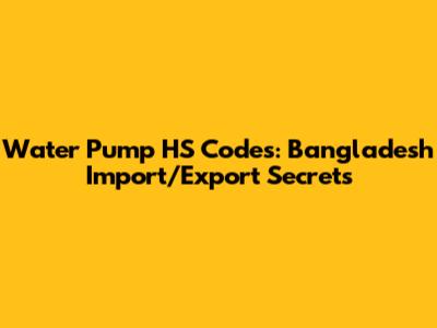 Water Pump HS Codes: Bangladesh Import/Export Secrets