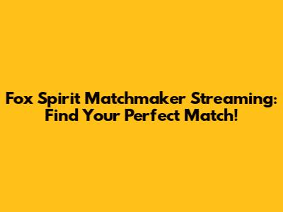 Where To Stream Fox Spirit Matchmaker: Find Your Perfect Match!
